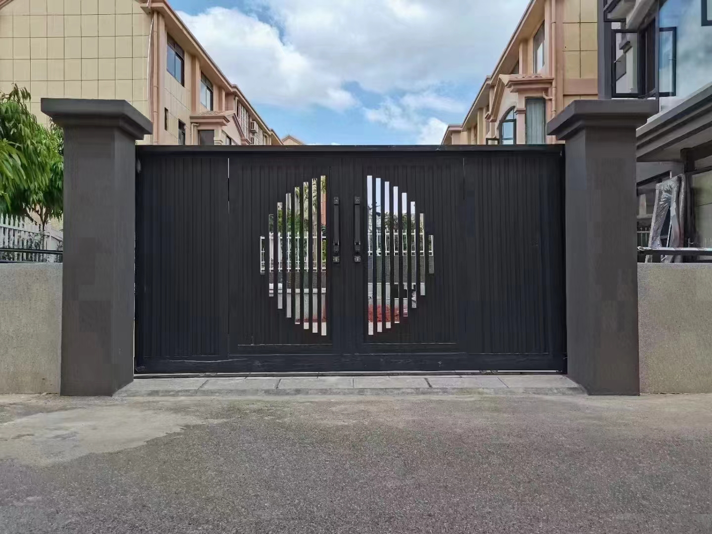 Aluminum alloy, Courtyard gate, Driveway gate, Villa entrance, Simple design, Flat-top, Modern art, Hollow, Swing