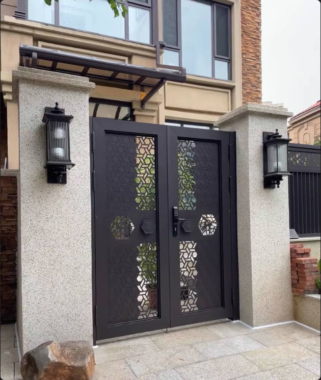 Aluminum alloy, Courtyard gate, Garden door, Villa entrance, Simple design, Flat-top, Modern art, Hollow, Swing